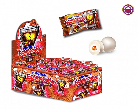 Главная · Каталог · Напитки, жевачки · КИСЛЫЕ БОМБАРИКИ Жевательная резинка в форме шариков c жидким центром со вкусом колы