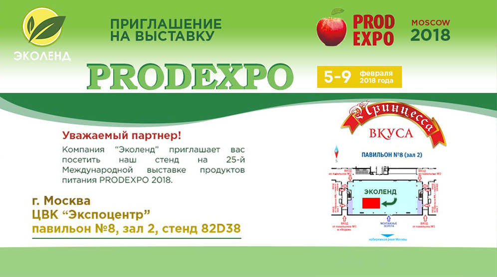 Компания «Эколенд» готовится к участию в одном из самых значимых событий российской и зарубежной индустрии питания — выставке PRODEXPO 2018.